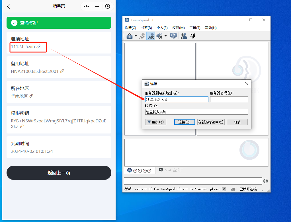 平台使用加入服务器本页总览加入服务器 第 1 步:连接服务器 打开 TeamSpeak 3 软件 没有软件?《点我安装》 输入或替换为你的连接地址 问:连接地址哪里看? 这个需要联系你朋友给你哈 注意:必须输入完整连接地址!必须带后缀!