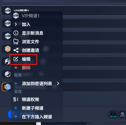 Teamspeak 6 - 客户端教程设置频道密码本页总览设置频道密码小贴士问:为什么我修改不了?答:因为你没有修改权限,请检查自己是否有Server Admin权限,检查方法 《点我查看》 。 1.连接服务器 1.右键需要修改的频道 2.点击 “编辑” 3.在此处输入你要设置的频道密码(留空为无密码) 4.设置完成,点击 “保存选项” 5.本章节教程结束!